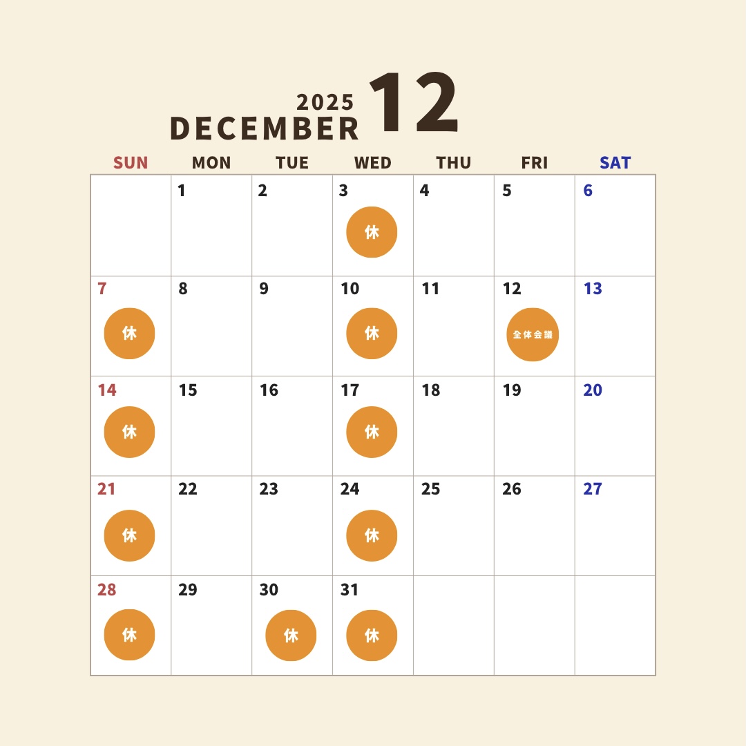 12月の休診日は下記の日程となります。